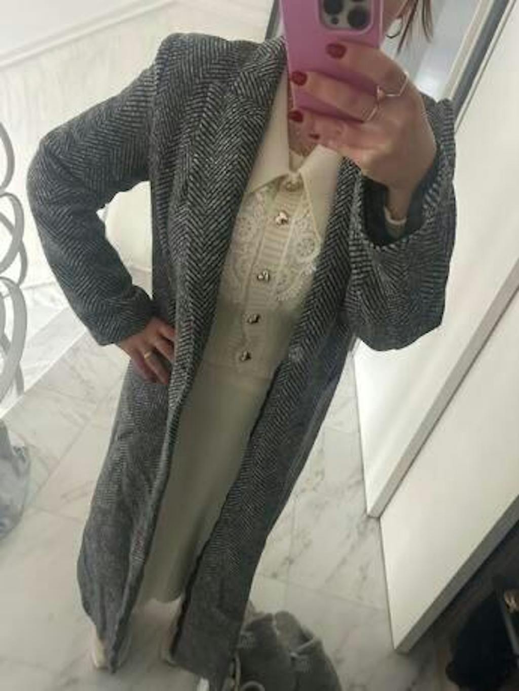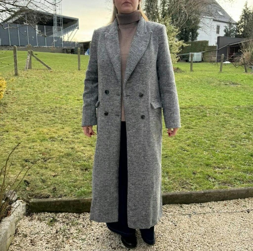 This is a dream. The quality is amazing and it fits perfectly my petite body. Highly recommended this. The labels are giving information like handmade and 100% wool. The thickness is medium but being wool I am sure I will be warm in winter. Thank you so much for making this coat. Lovely piece of work ❤️